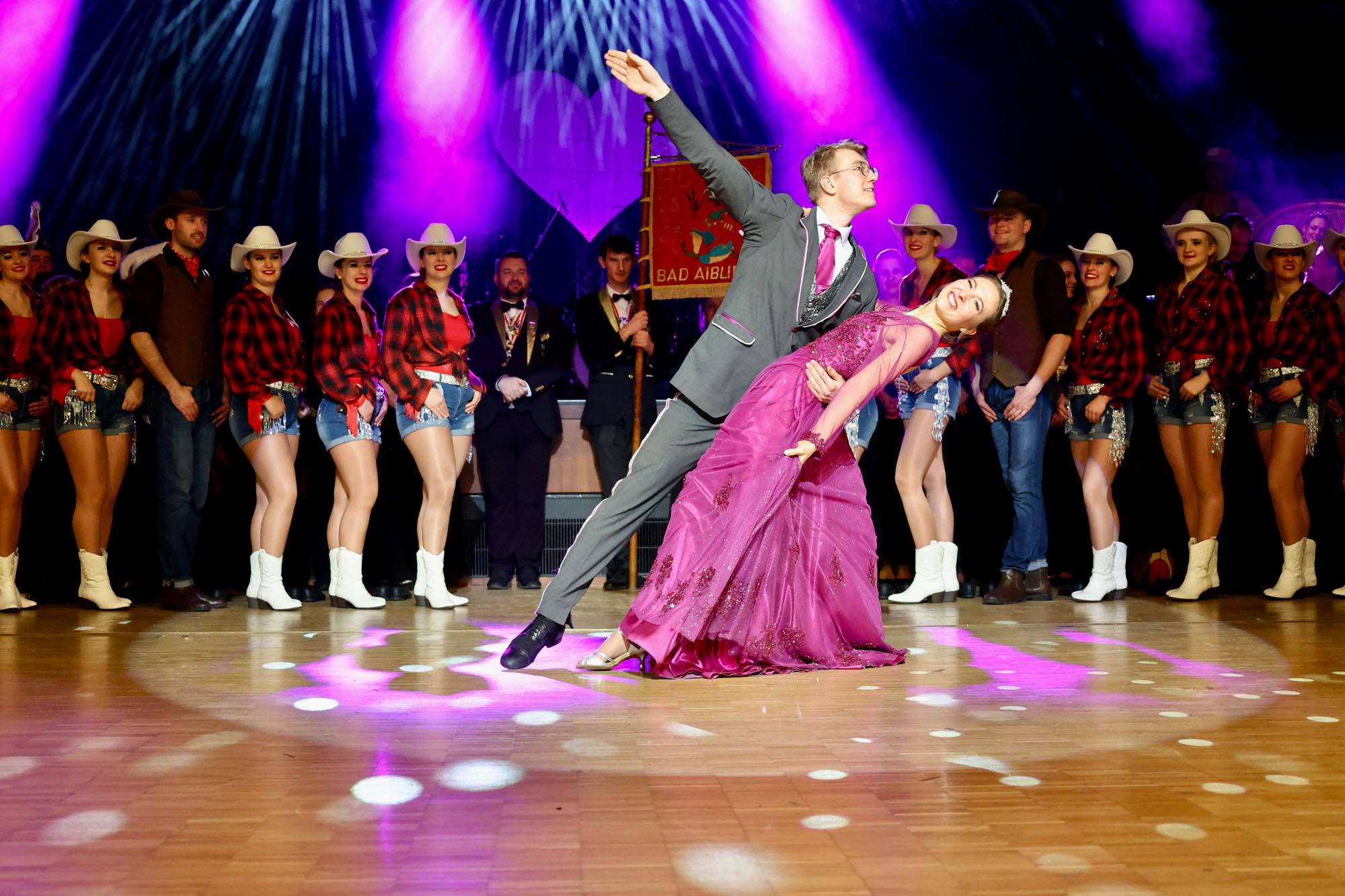 Zum Abschluss ging es ins American-Jukebox-Fieber: Die Faschingsgilde Bad Aibling begeisterte mit „Dance across the beat – Bad Aibling im American Jukebox Fieber“. Prinz Marinus II. und Prinzessin Lisa I. lieferten eine energiegeladene Show voller Rhythmus, Glanz und Rock’n’Roll-Feeling.